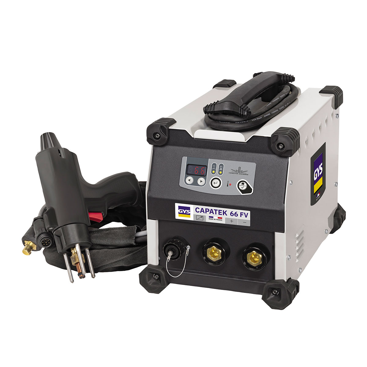 CAPATEK 66 FV je industrijski izvor struje s kapacitivnim kontaktnim pražnjenjem, sposoban za zavarivanje klinova od M3 do M8 promjera u bakru i nehrđajućem čeliku na tanki lim bez tragova ili deformacija. Njegov revolucionarni ergonomski kontaktni pištolj, s podesivom snagom i okidačem, osigurava ultra brze brzine zavarivanja. «FV» tehnologija omogućuje rad na svim monofaznim izvorima napajanja (85 do 265 V).