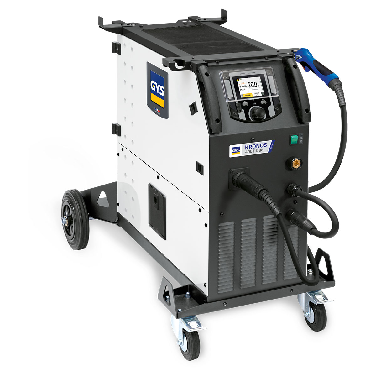 KRONOS 400T DUO je višeprocesni trofazni inverterski aparat za zavarivanje modularnog dizajna, što znači da se može opremiti zasebnim dodavačem žice (opcija) za učinkovit rad s dvije različite vrste žice.